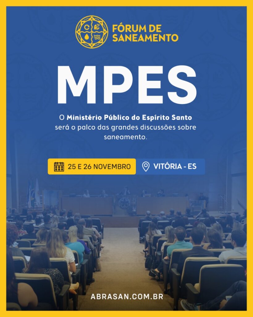 Promovido pela ABRASAN – Associação Brasileira de Saneamento –, o evento acontecerá no auditório do Ministério Público do Espírito Santo (MPES), que se tornará palco de debates estratégicos sobre os quatro eixos fundamentais do setor: abastecimento de água, esgotamento sanitário, manejo de resíduos sólidos e drenagem urbana.